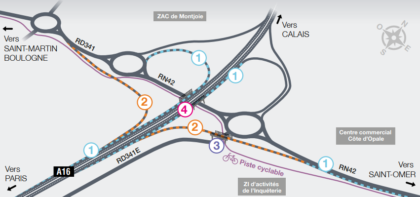 La RN42 constitue un lien routier structurant pour les déplacements dans le Boulonnais et, plus largement, dans le Pas-de-Calais. Le secteur concerné par les travaux fait l’objet d’un fort trafic en raison de la présence de zones commerciales et d’activités très fréquentées. Le projet d’aménagement de la liaison A16/RN42 permet ainsi d’améliorer le fonctionnement de cette zone, grâce à la réalisation de plusieurs interventions majeures :