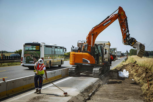 Pour vous assurer une sécurité permanente sur notre réseau, nous nous devons de mettre en conformité les outils à votre disposition et nous vous remercions de votre compréhension. Suivant les sites, des limitations de vitesse avec neutralisations de la voie de droite ou réductions de la largeur des voies sont mises en place. Ces restrictions permettent à nos équipes d’évoluer sur les chantiers en sécurité.