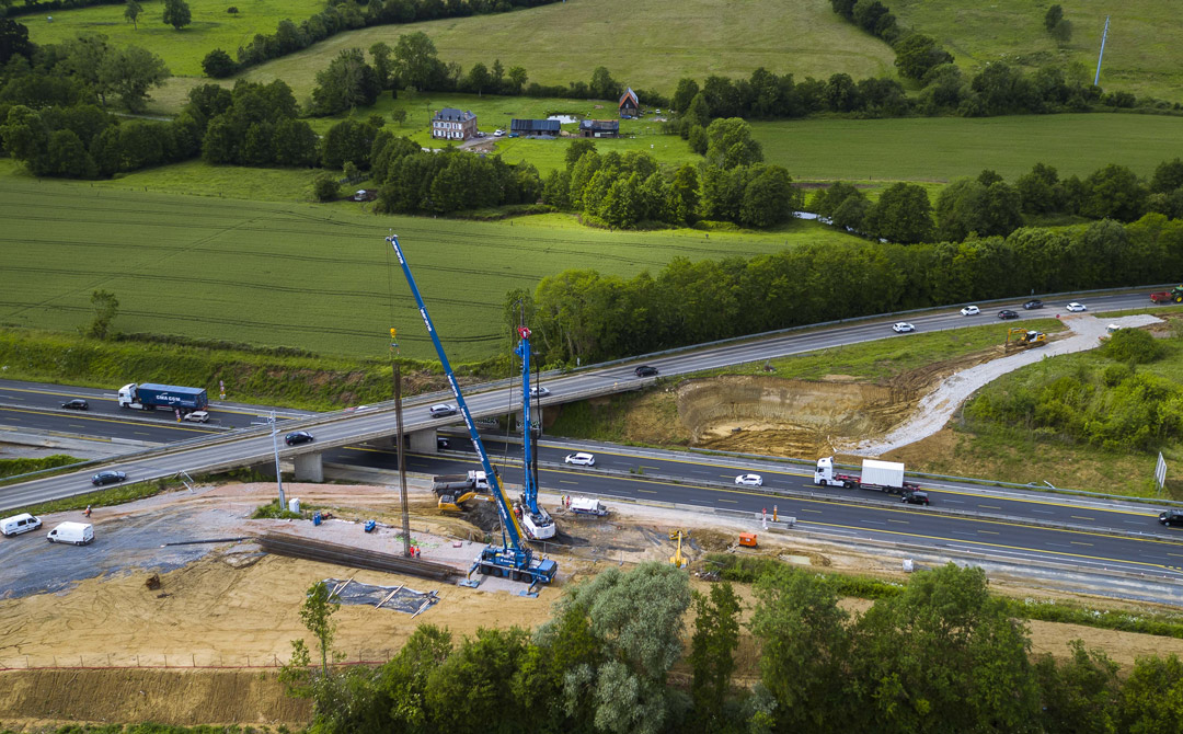 Après la démolition de plusieurs ponts, les équipes commencent leur reconstruction dans le cadre de l’élargissement de l’A13 à 2x3 voies entre Pont-l’Évêque et Dozulé. L’objectif est d’accueillir une 3e voie dans chaque sens de circulation sur l’autoroute.