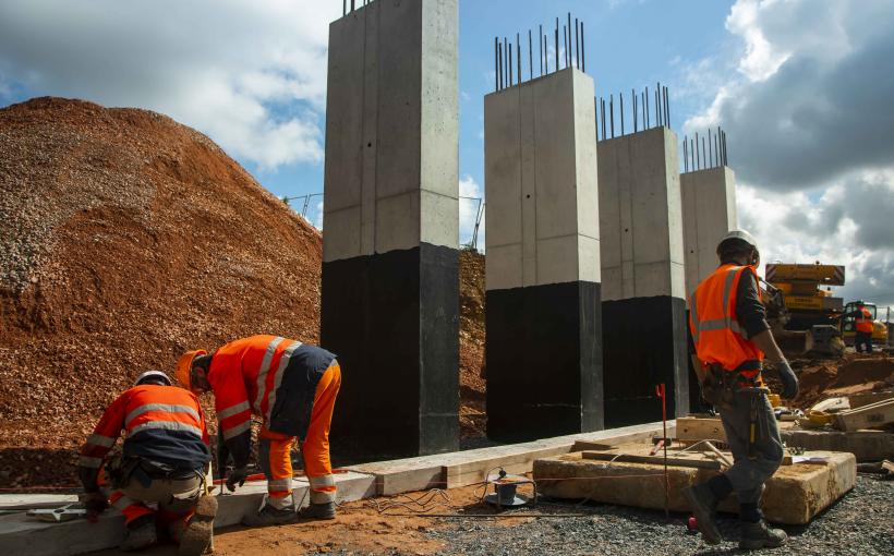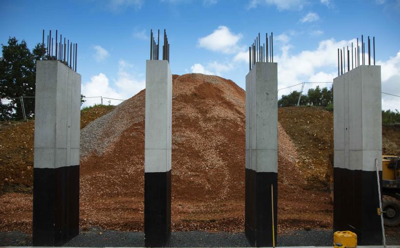 Construction des piles pour la pose du tablier, au niveau du pont de la VC4 (Beaumont-en-Auge).