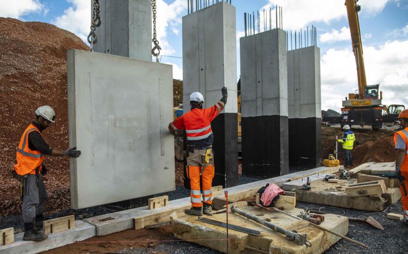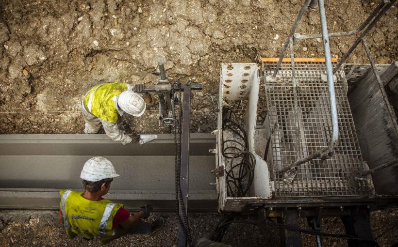 Cette intervention comprend la pose de la charpente du tablier mais aussi la pose des dalles préfabriquées qui serviront de coffrage au plancher. Ces dalles limitent les risques de fissuration et permettent une fabrication beaucoup plus rapide par nos équipes.