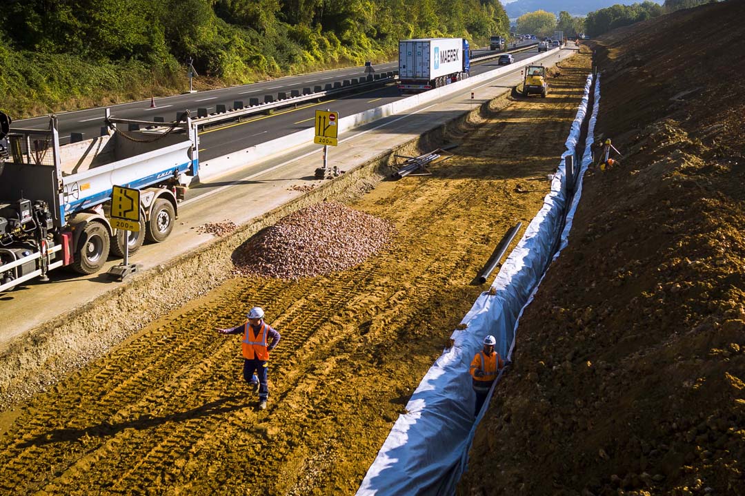 Ce chantier d’envergure commencé en 2016 ne concerne pas seulement l’élargissement des voies mais il comporte aussi la mise aux normes des bandes d’urgence, la création de 6 bassins de rétention et l’adaptation de 22 ponts !