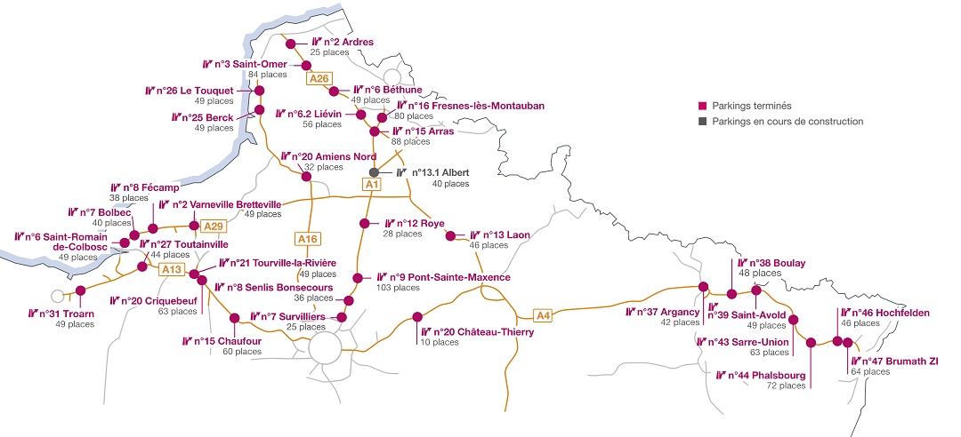 Actuellement, plus de 1 500 places sont disponibles à proximité de ses autoroutes et le nombre de places accessibles devrait encore largement se développer au cours des années à venir.
